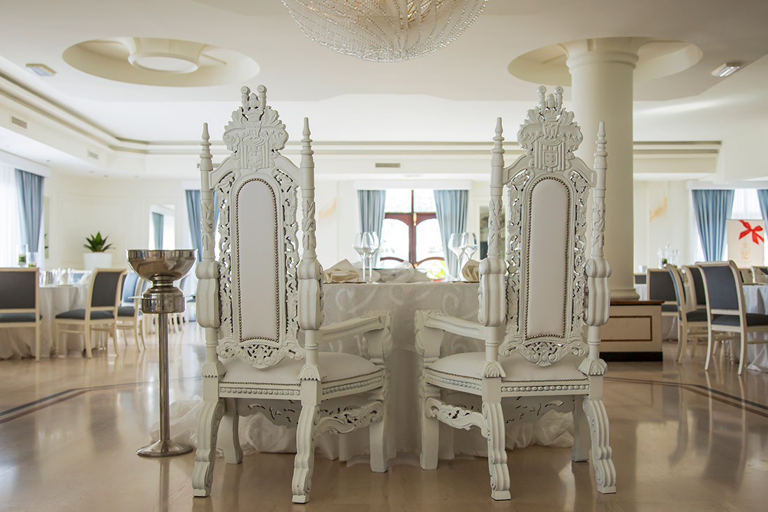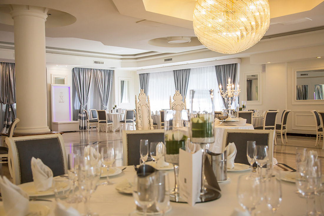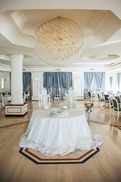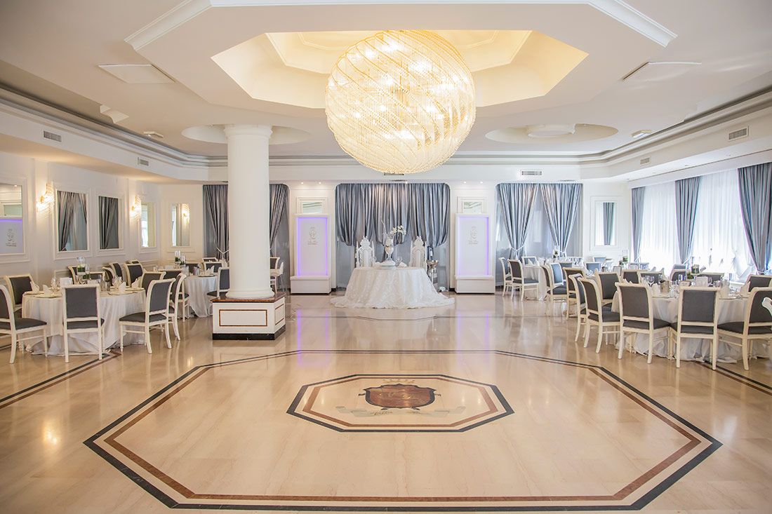 La Sala Cristalli trasforma le nozze in una fiaba, le impreziosisce e le fa risplendere di luce propria. Ogni allestimento è studiato nei minimi particolari per rispecchiare il gusto degli sposi. Insieme alla Sala Smeraldo, può essere utilizzata per accogliere ricevimenti da 350 invitati!